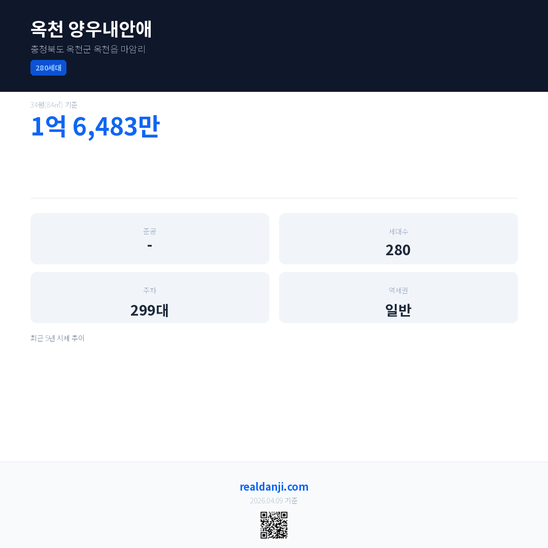 옥천 양우내안애 최근 거래가는 2억 2,231만입니다. (2015-11)