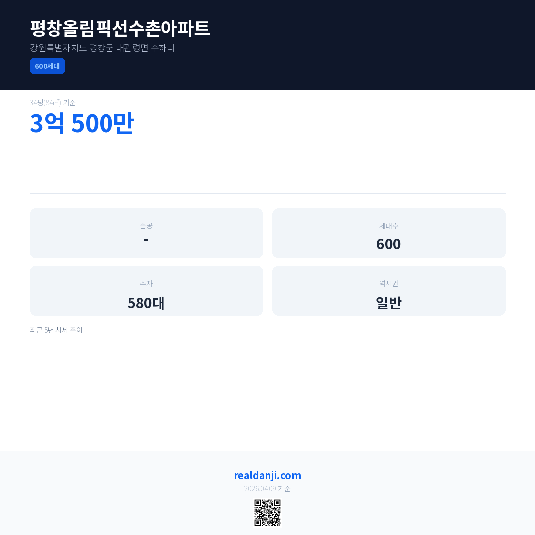 평창올림픽선수촌아파트 최근 거래가는 3억 500만입니다. (2015-12)