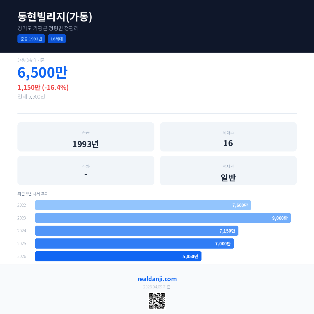 동현빌리지(가동) 최근 거래가는 9,000만입니다. (2026-02)