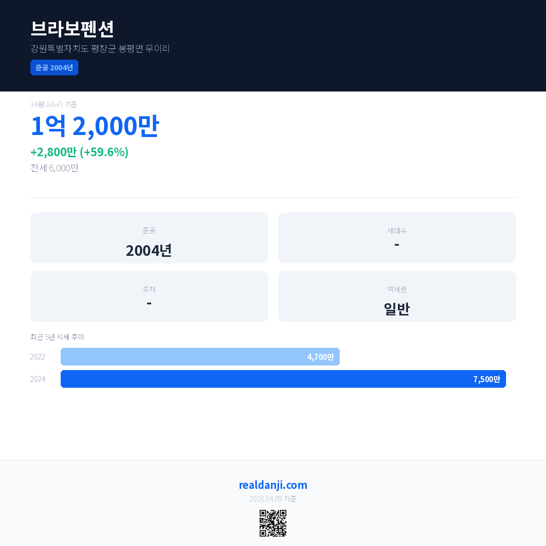 브라보펜션 최근 거래가는 1억 2,000만입니다. (2026-02)
