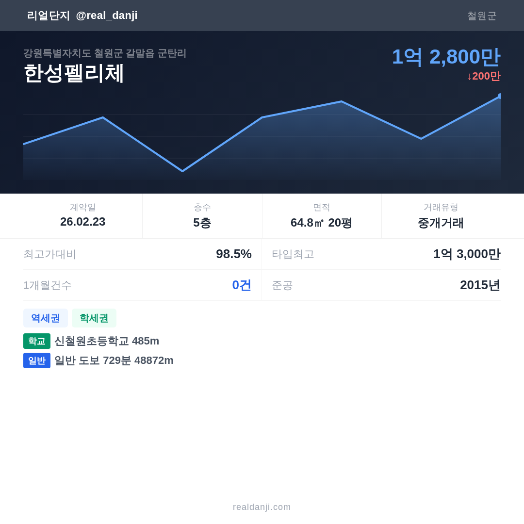 | 2026.02.23 | 65㎡ | 5층 | 1억 2,800만 |
