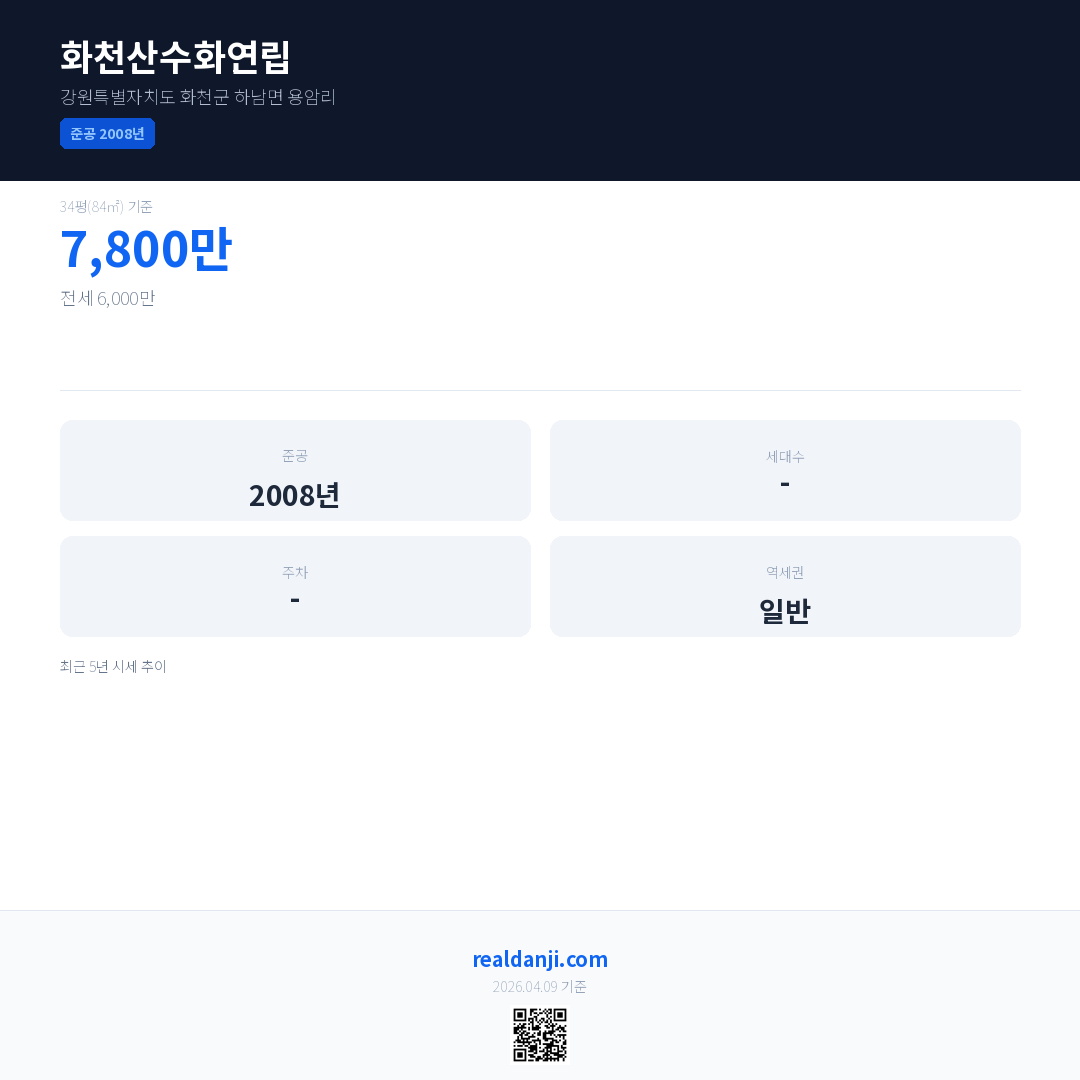 화천산수화연립 최근 거래가는 7,800만입니다. (2026-02)