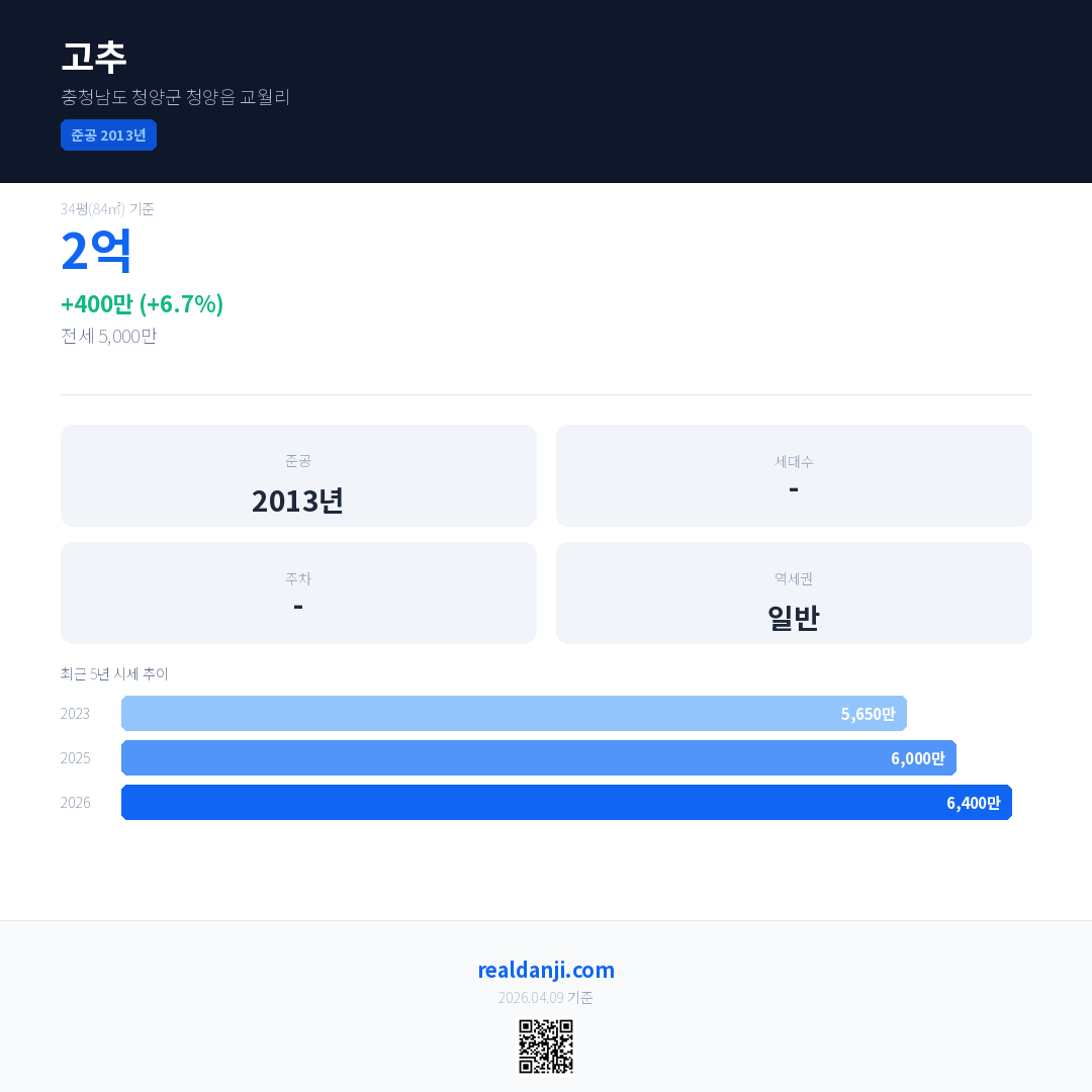 고추 국민평형 기준 2026년 평균 거래가는 6,400만으로, 전년 대비 6.7% 상승 했습니다.