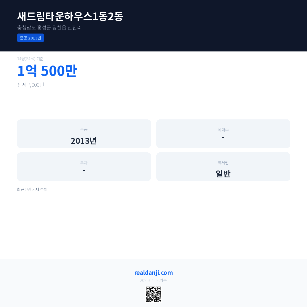 새드림타운하우스1동2동은(는) 2013년에 준공되었으며, 현재 13년차입니다.