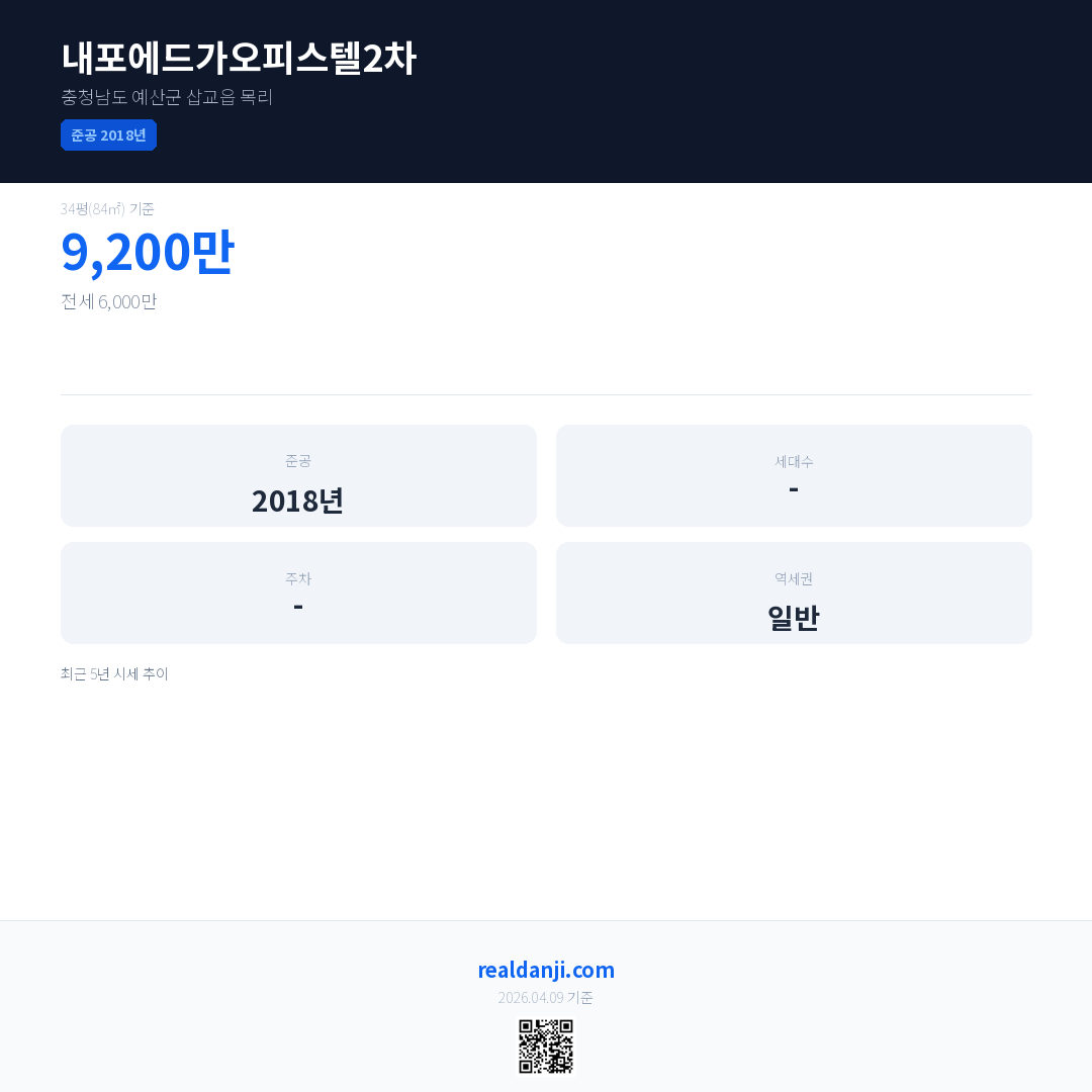 내포에드가오피스텔2차은(는) 2018년에 준공되었으며, 현재 8년차입니다.