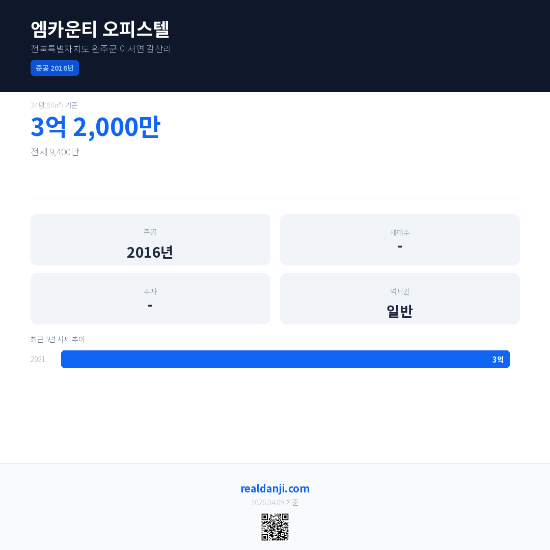 엠카운티 오피스텔은(는) 2016년에 준공되었으며, 현재 10년차입니다.