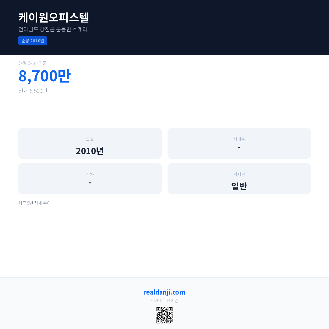 케이원오피스텔 최근 거래가는 8,100만입니다. (2018-07)