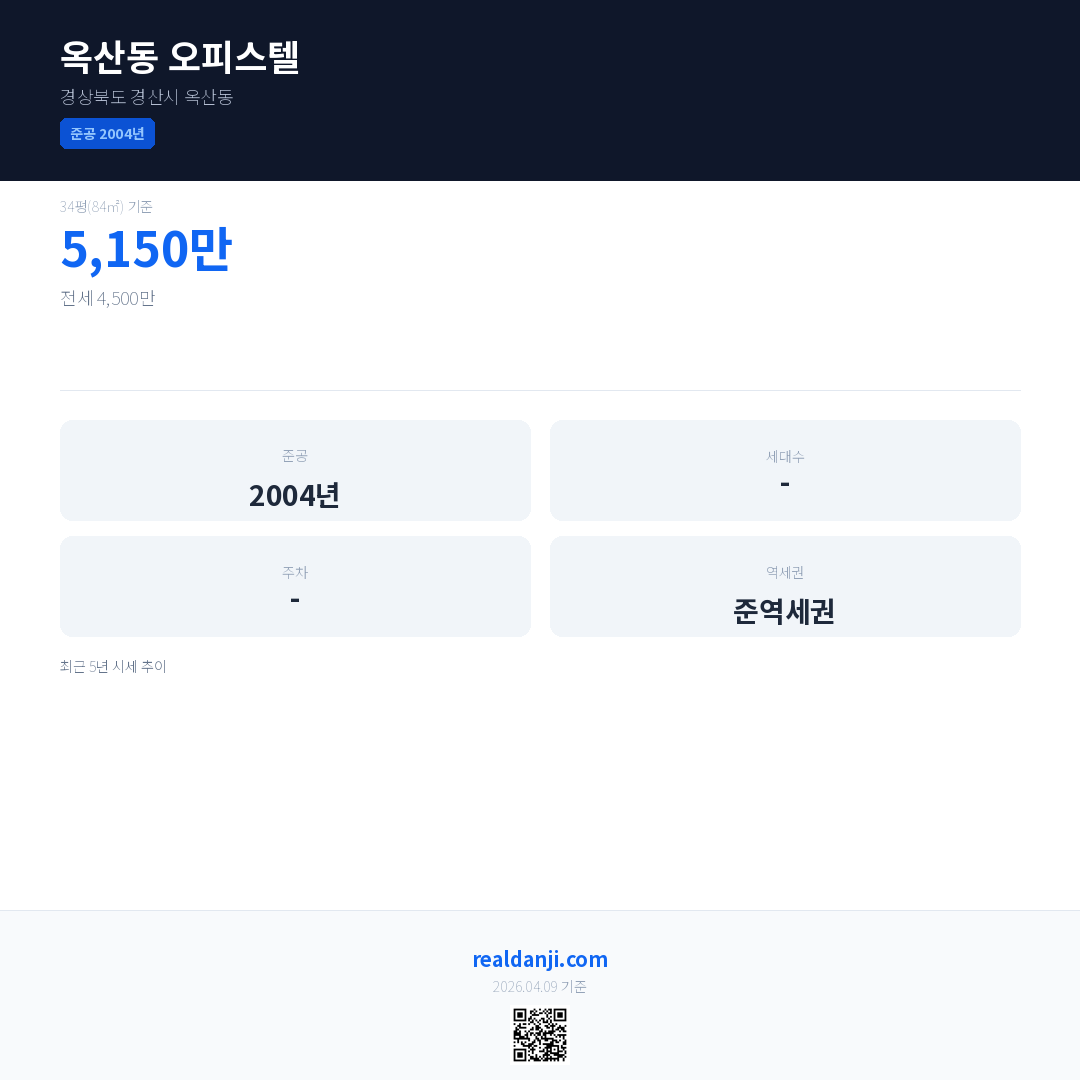 옥산동 오피스텔은(는) 2004년에 준공되었으며, 현재 22년차입니다.