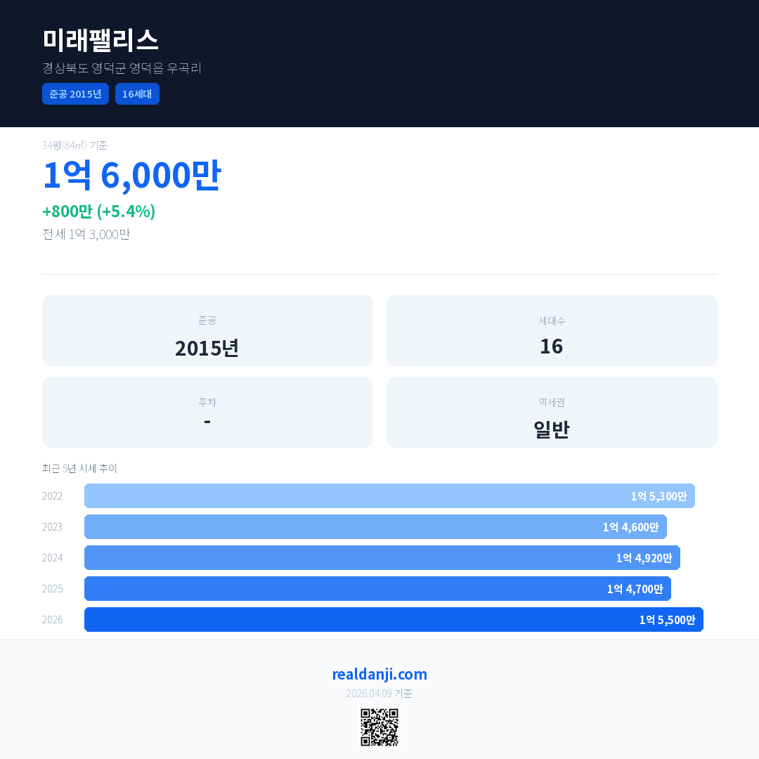 미래팰리스 최근 거래가는 1억 6,000만입니다. (2026-02)