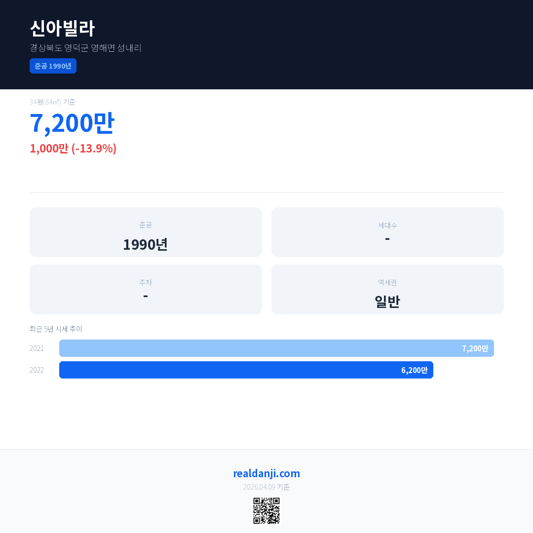 신아빌라 최근 거래가는 7,200만입니다. (2022-04)