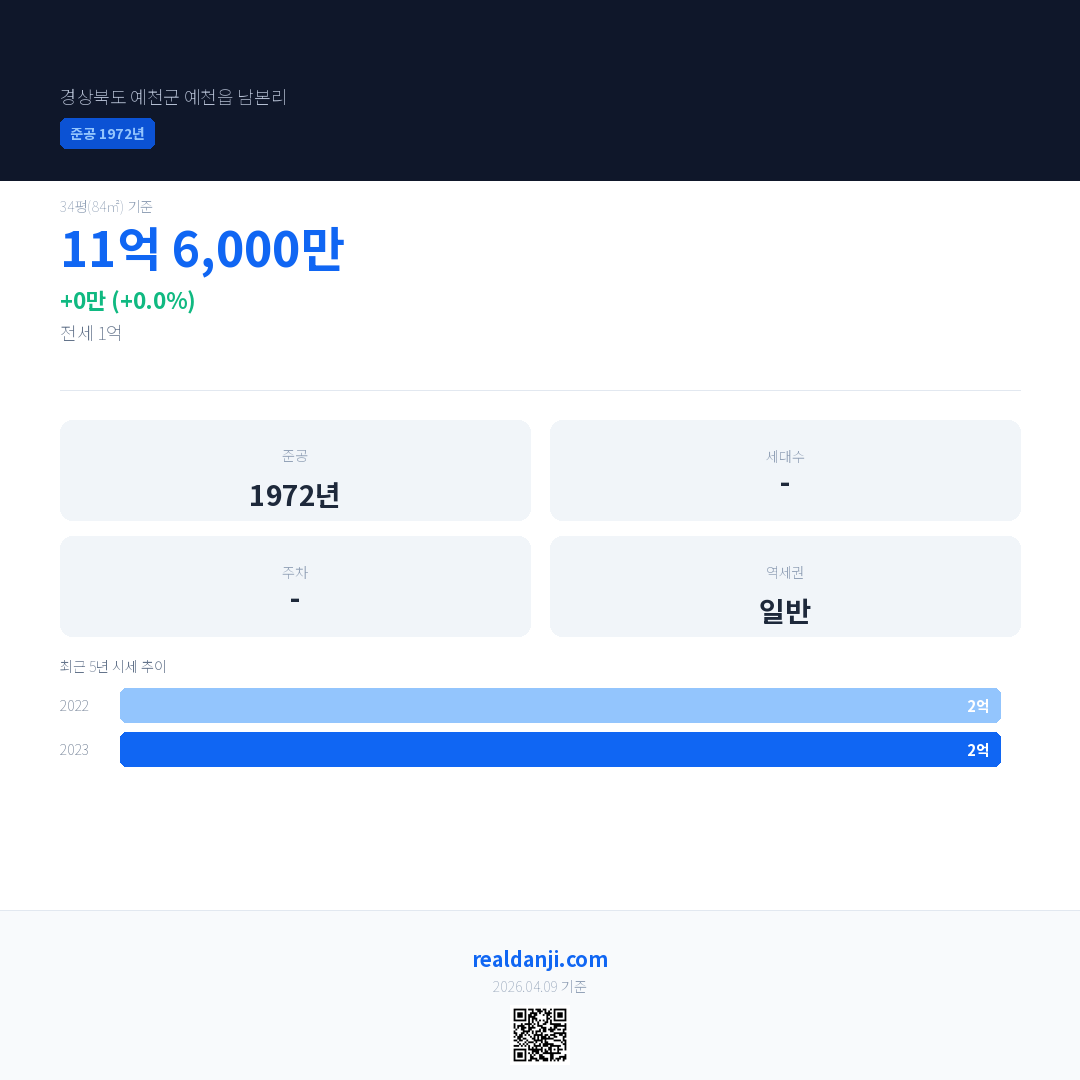 국민평형 기준 2023년 평균 거래가는 2억으로, 전년 대비 0.0% 하락 했습니다.