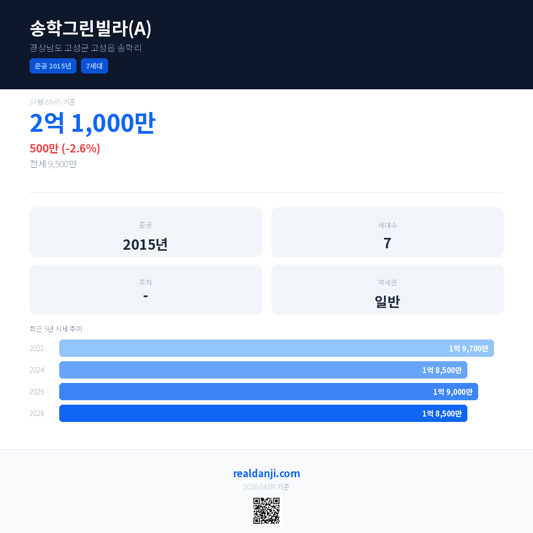 송학그린빌라(A) 최근 거래가는 2억 1,000만입니다. (2026-02)