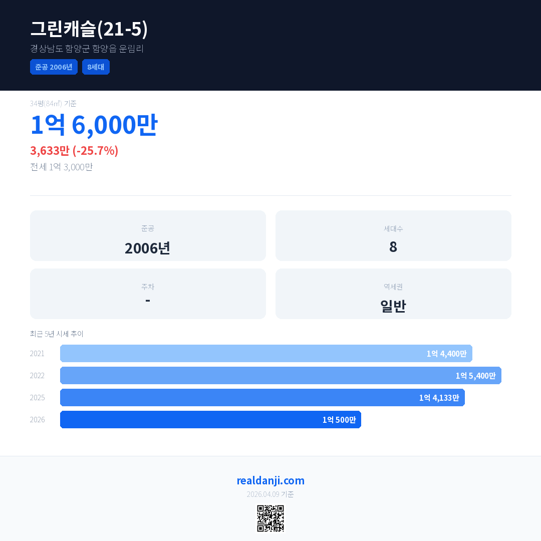 그린캐슬(21-5) 최근 거래가는 1억 6,000만입니다. (2026-02)
