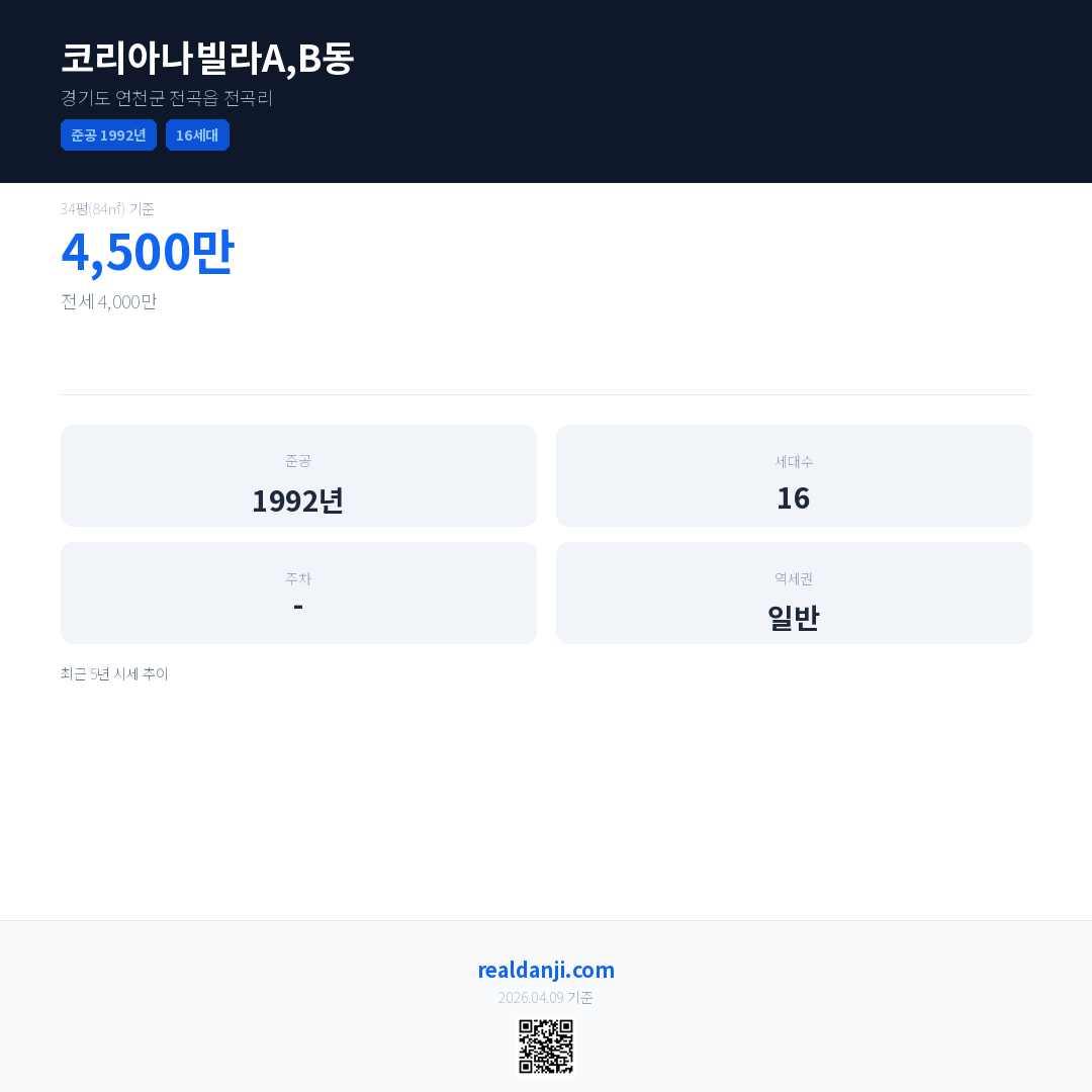 코리아나빌라A,B동 최근 거래가는 4,500만입니다. (2026-04)