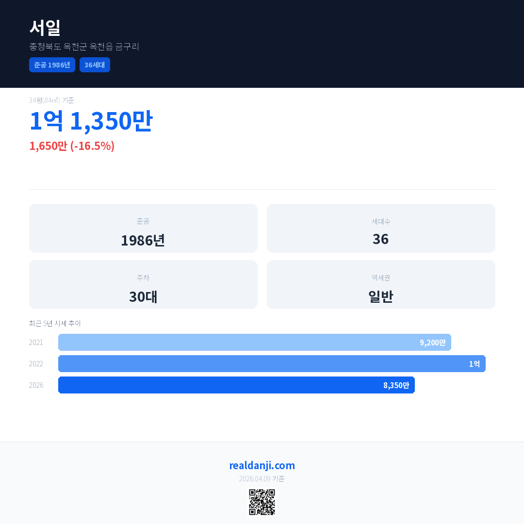 서일 국민평형 기준 2026년 평균 거래가는 8,350만으로, 전년 대비 16.5% 하락 했습니다.