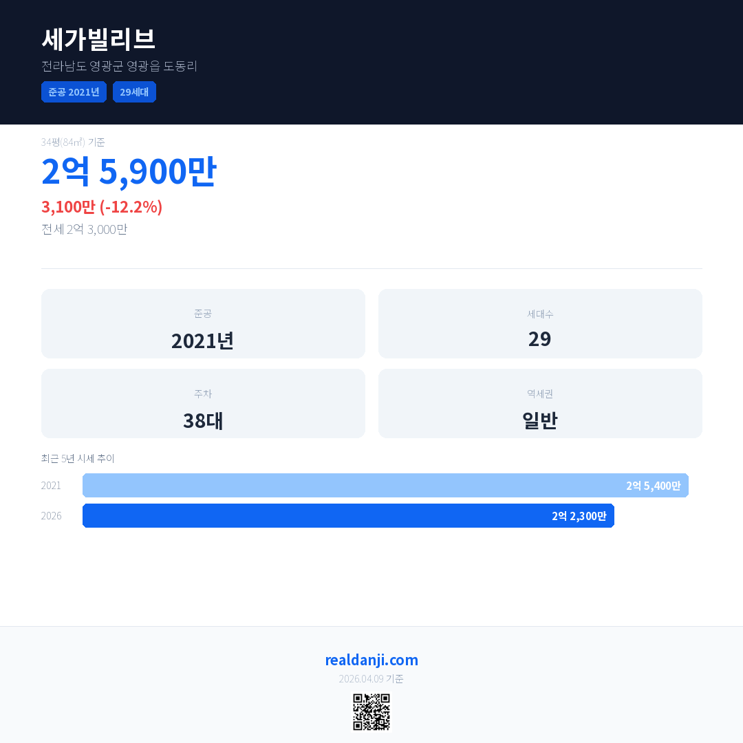 세가빌리브 최근 거래가는 2억 5,900만입니다. (2026-03)