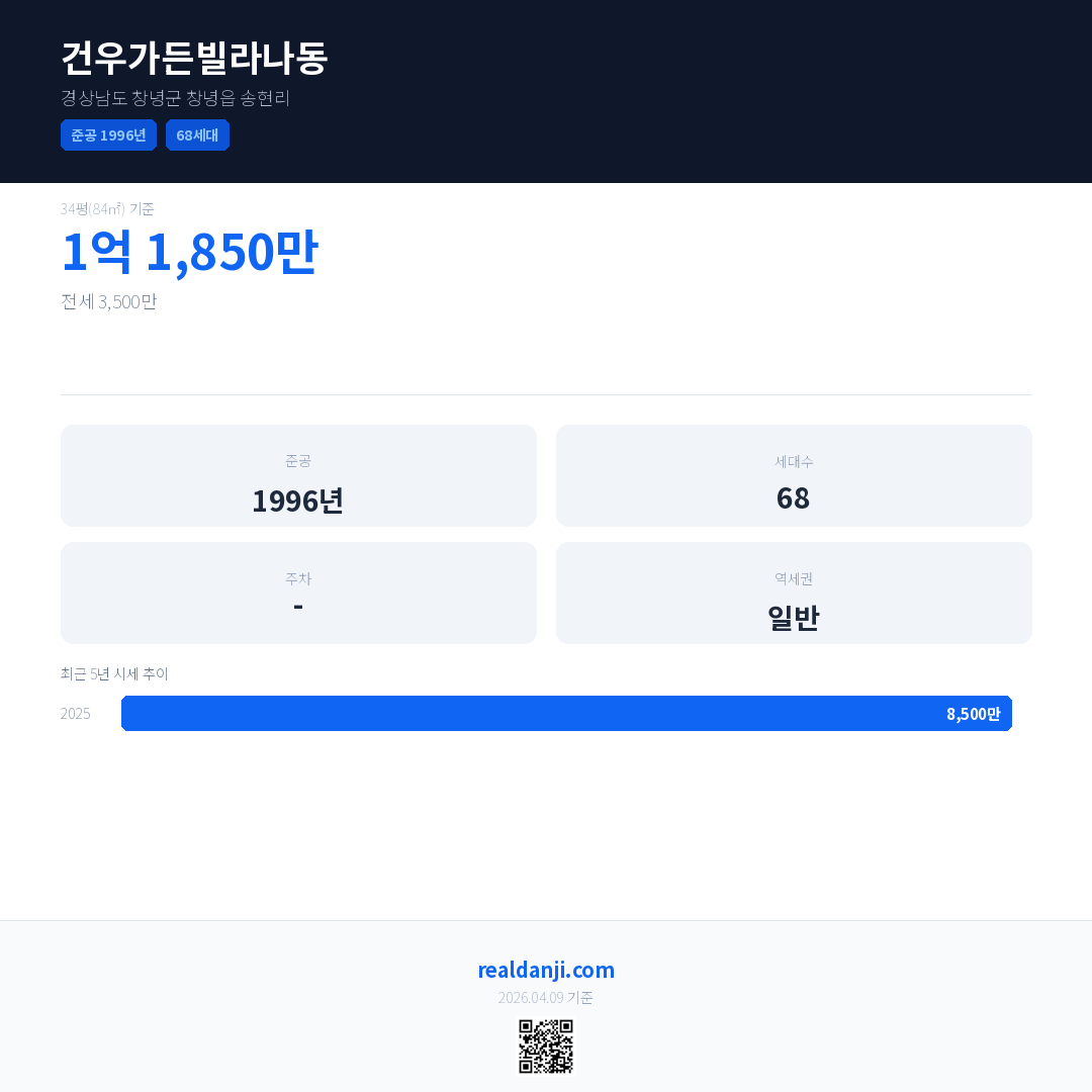 건우가든빌라나동 최근 거래가는 1억 1,850만입니다. (2026-03)