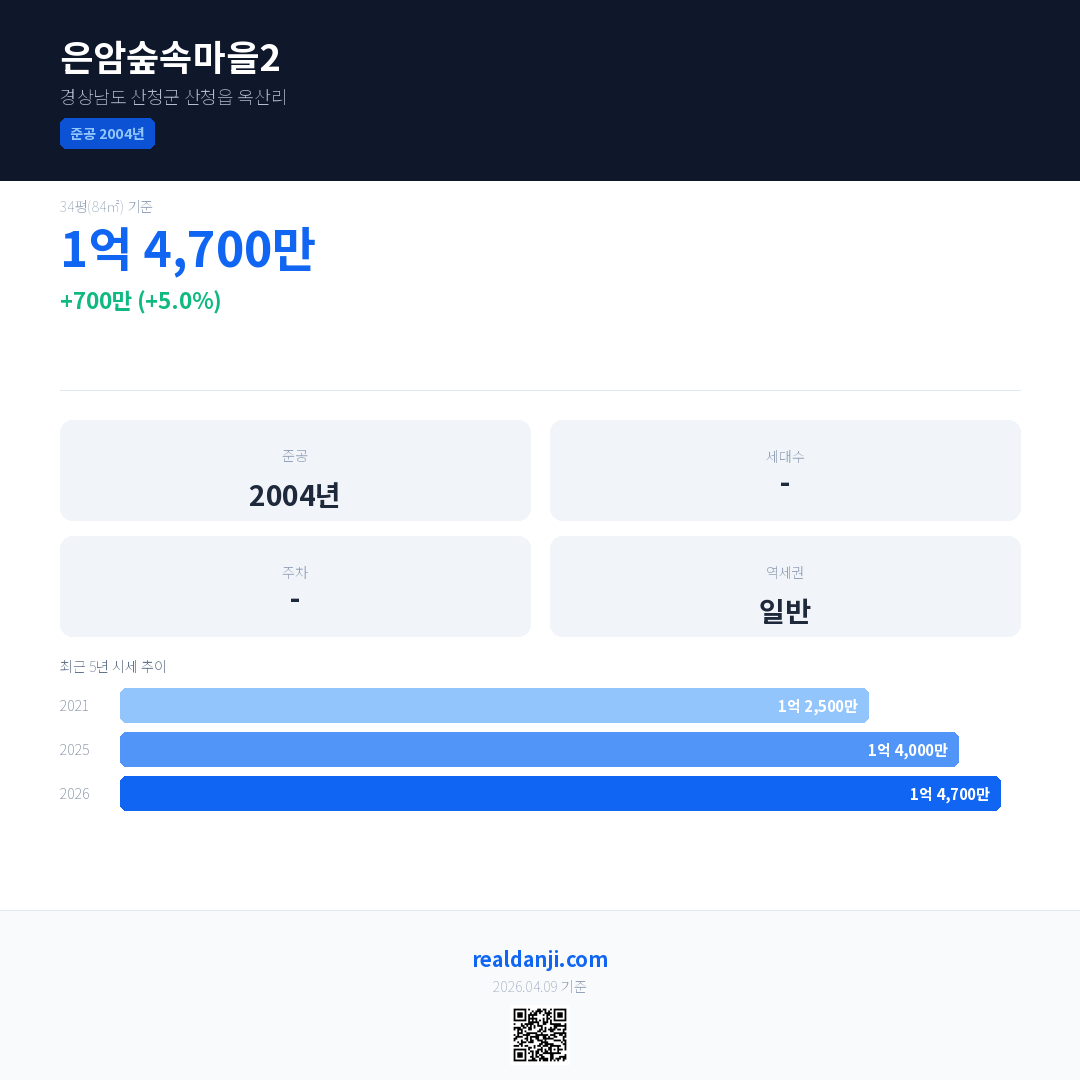 은암숲속마을2 최근 거래가는 1억 4,700만입니다. (2026-03)