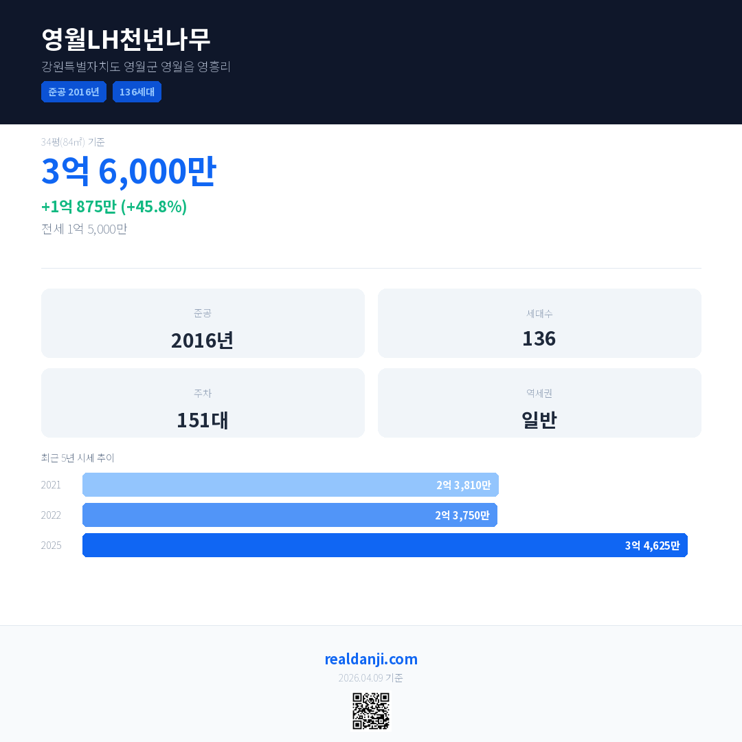 영월LH천년나무 최근 거래가는 3억 6,000만입니다. (2026-02)