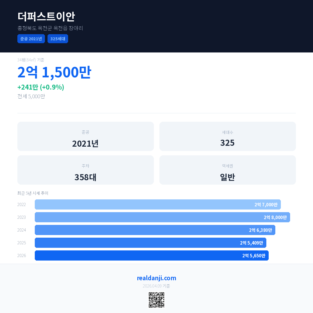 더퍼스트이안 국민평형 기준 2026년 평균 거래가는 2억 5,650만으로, 전년 대비 0.9% 상승 했습니다.