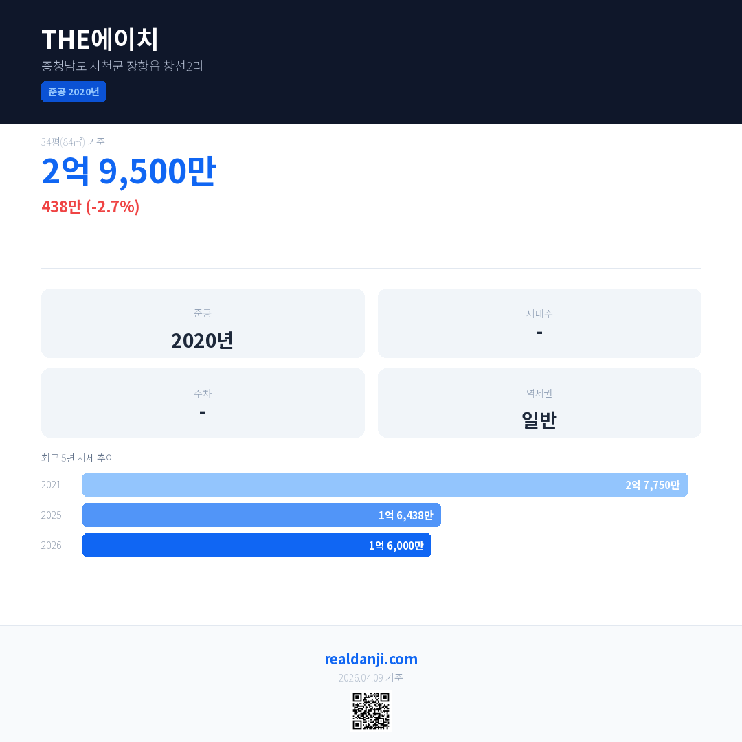 THE에이치 최근 거래가는 1억 6,500만입니다. (2026-03)
