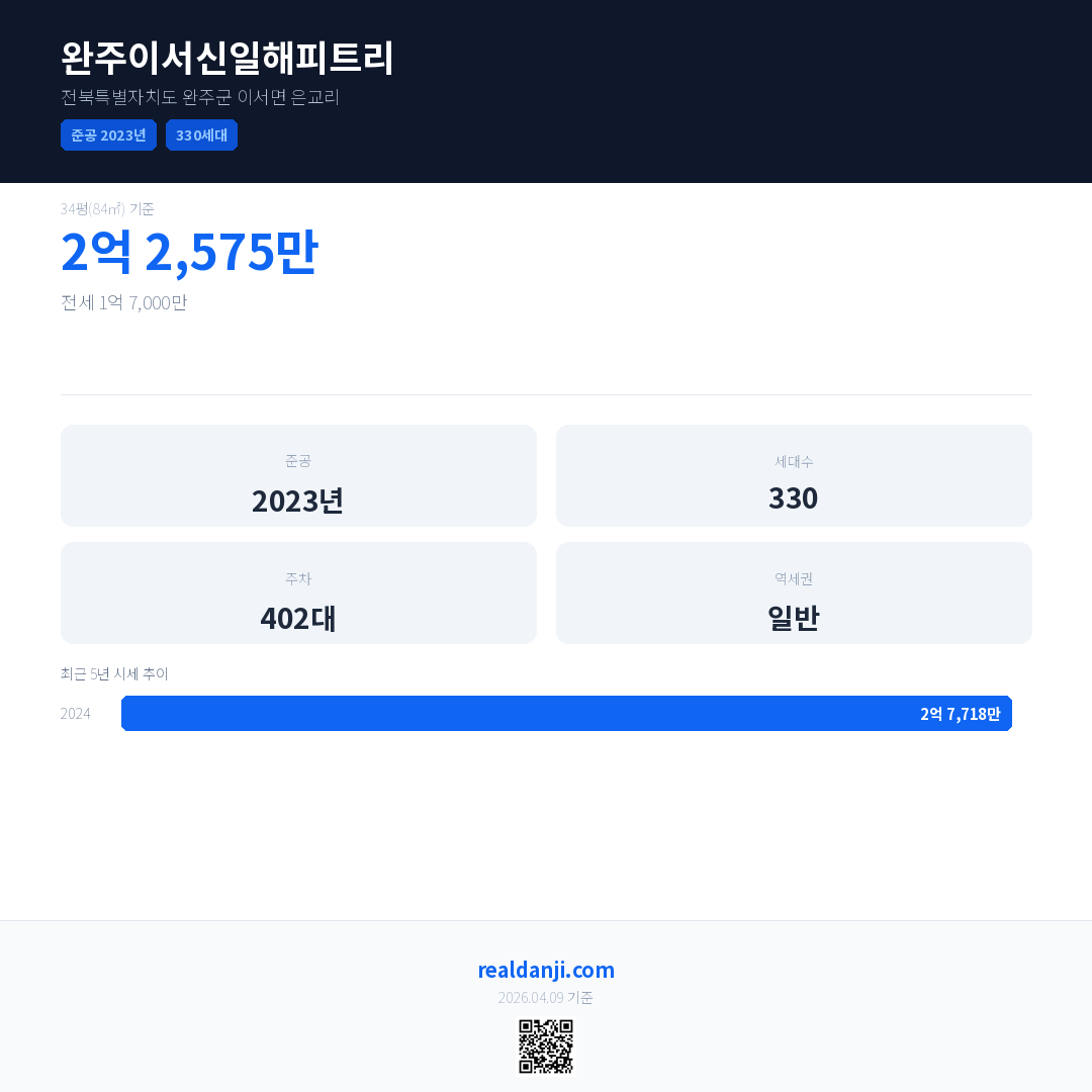 완주이서신일해피트리 최근 거래가는 2억 7,718만입니다. (2026-03)
