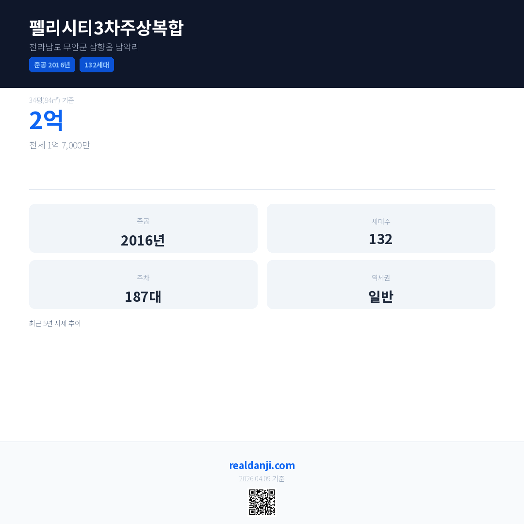 펠리시티3차주상복합 최근 거래가는 2억입니다. (2026-04)