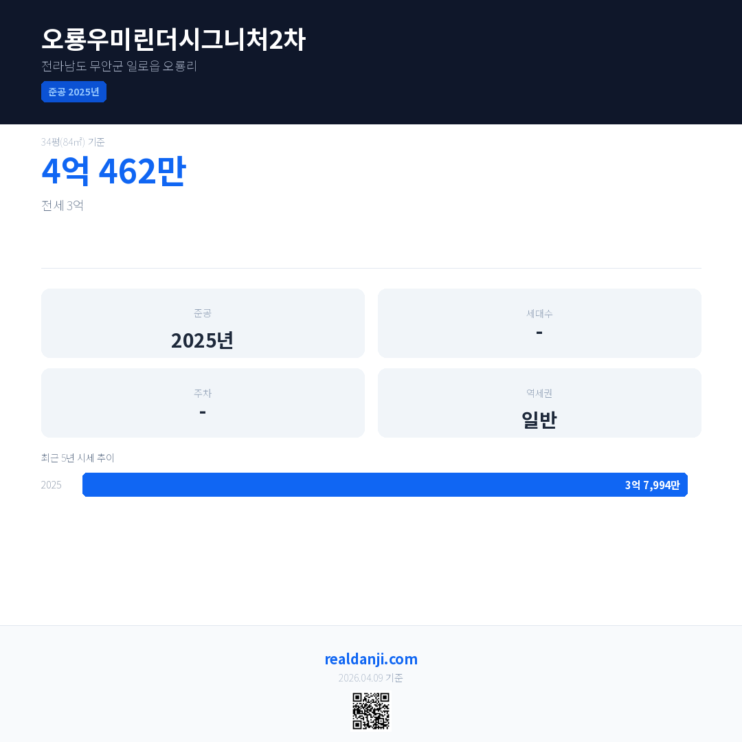 오룡우미린더시그니처2차 최근 거래가는 4억 462만입니다. (2025-12)