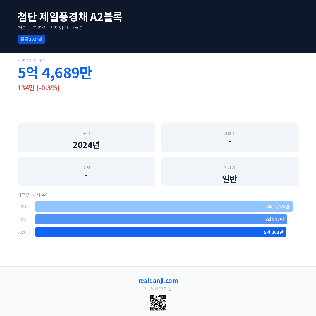 첨단 제일풍경채 A2블록 최근 거래가는 5억 4,689만입니다. (2026-04)