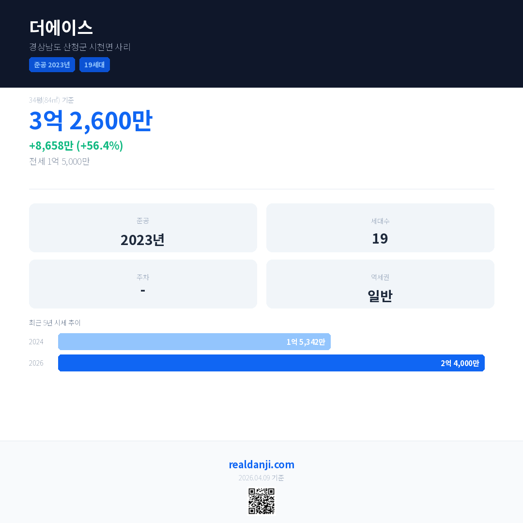 더에이스 국민평형 기준 2026년 평균 거래가는 2억 4,000만으로, 전년 대비 56.4% 상승 했습니다.
