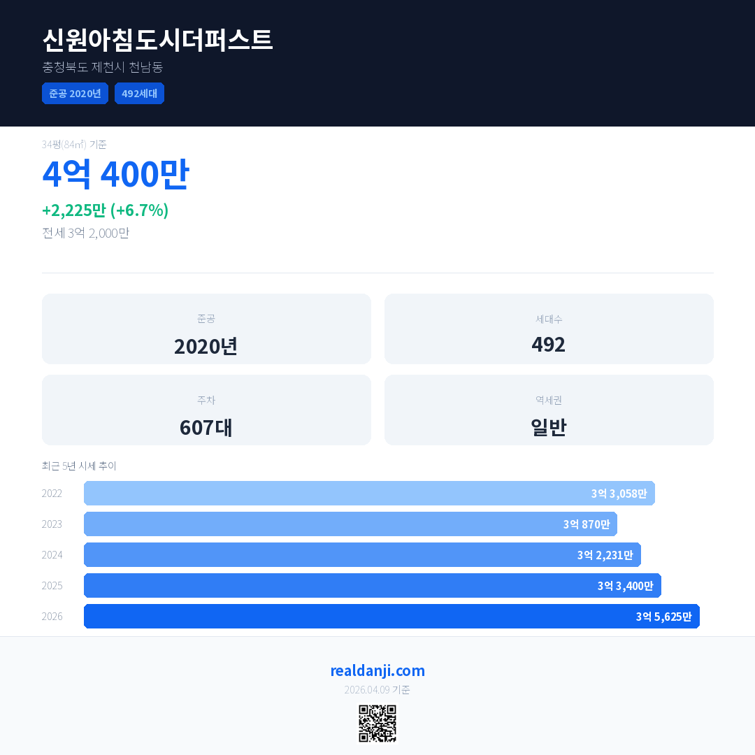 신원아침도시더퍼스트 국민평형 기준 2026년 평균 거래가는 3억 5,625만으로, 전년 대비 6.7% 상승 했습니다.