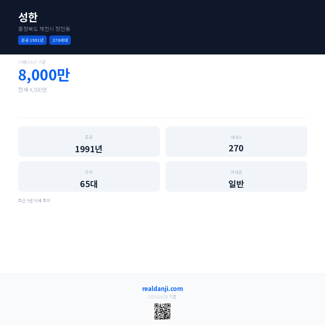 성한 최근 거래가는 8,000만입니다. (2026-03)