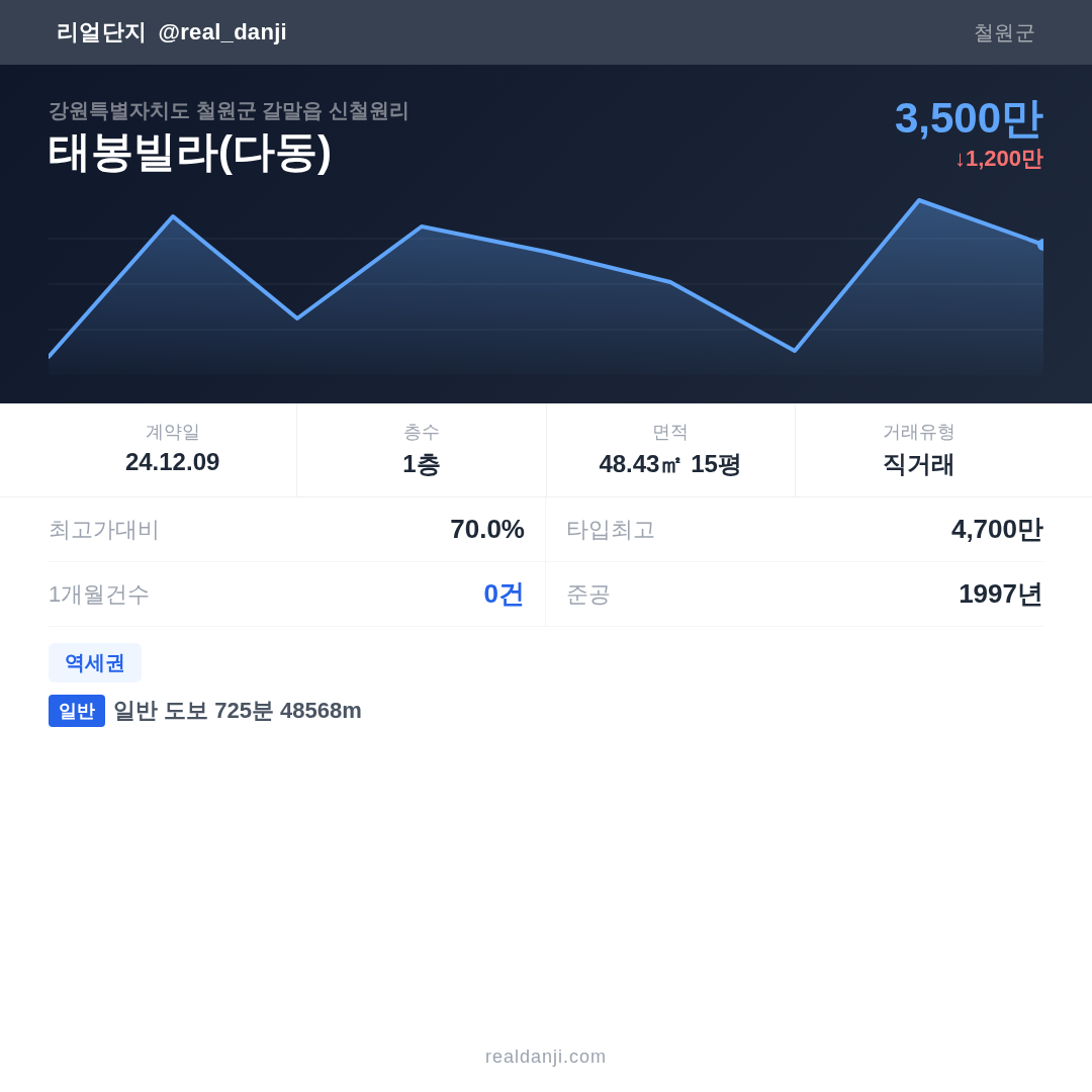 | 2024.12.09 | 48㎡ | 1층 | 3,500만 |