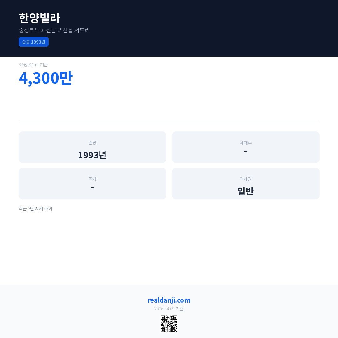 한양빌라 최근 거래가는 4,300만입니다. (2023-02)