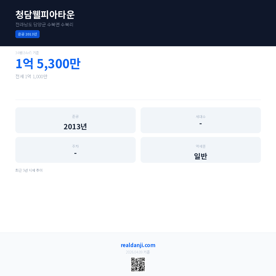 청담웰피아타운은(는) 2013년에 준공되었으며, 현재 13년차입니다.
