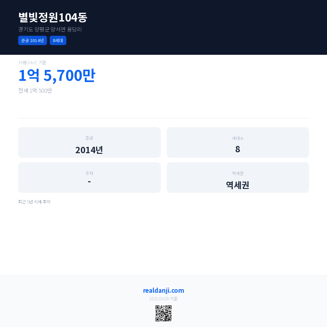 별빛정원104동 최근 거래가는 1억 5,700만입니다. (2019-06)