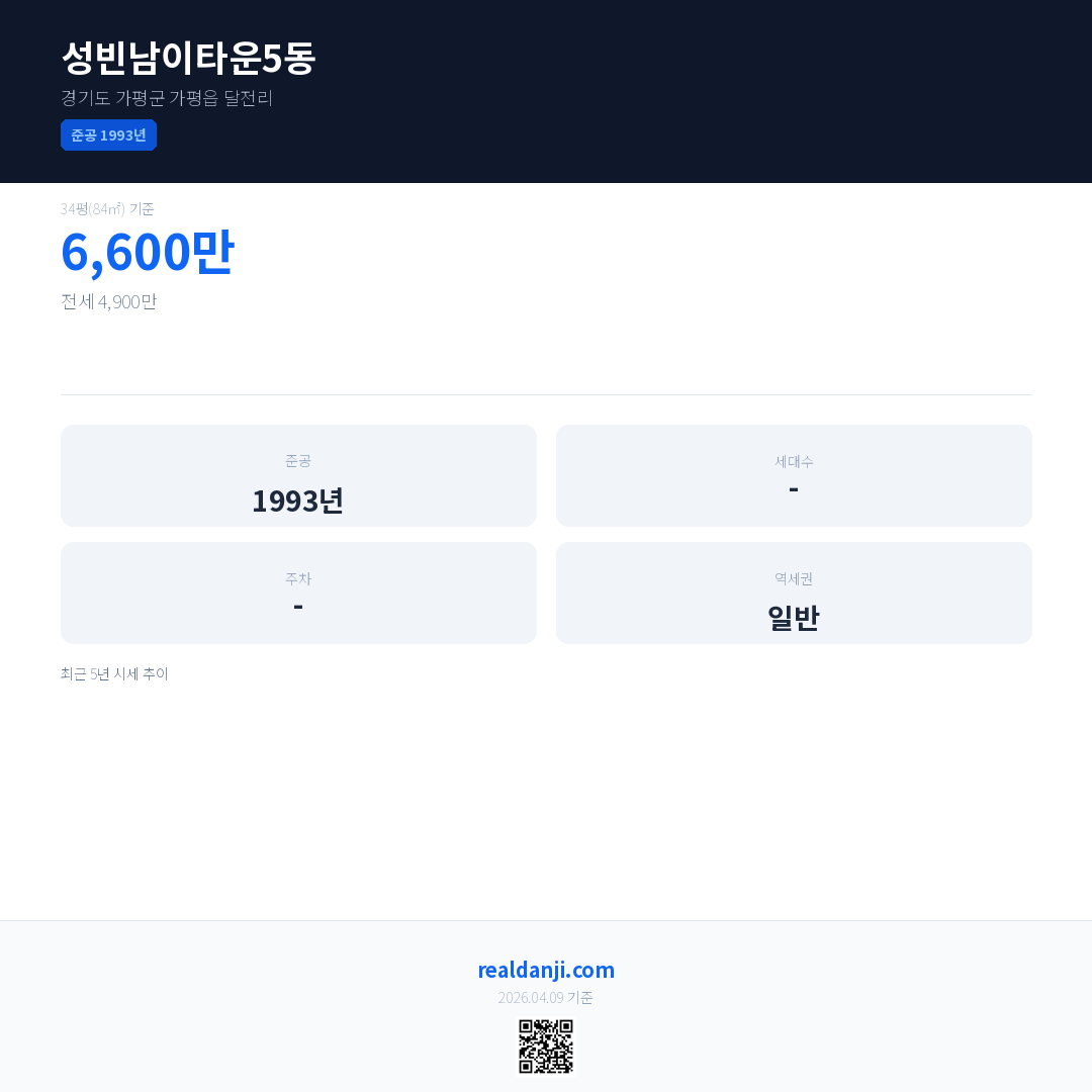 성빈남이타운5동 최근 거래가는 6,600만입니다. (2025-03)
