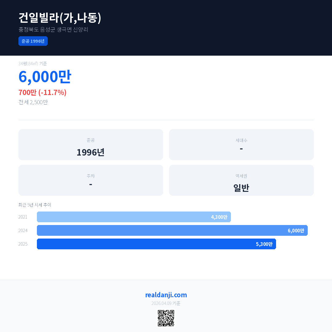 건일빌라(가,나동) 최근 거래가는 6,000만입니다. (2025-07)