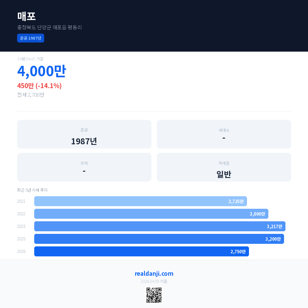 매포 최근 거래가는 4,000만입니다. (2026-01)