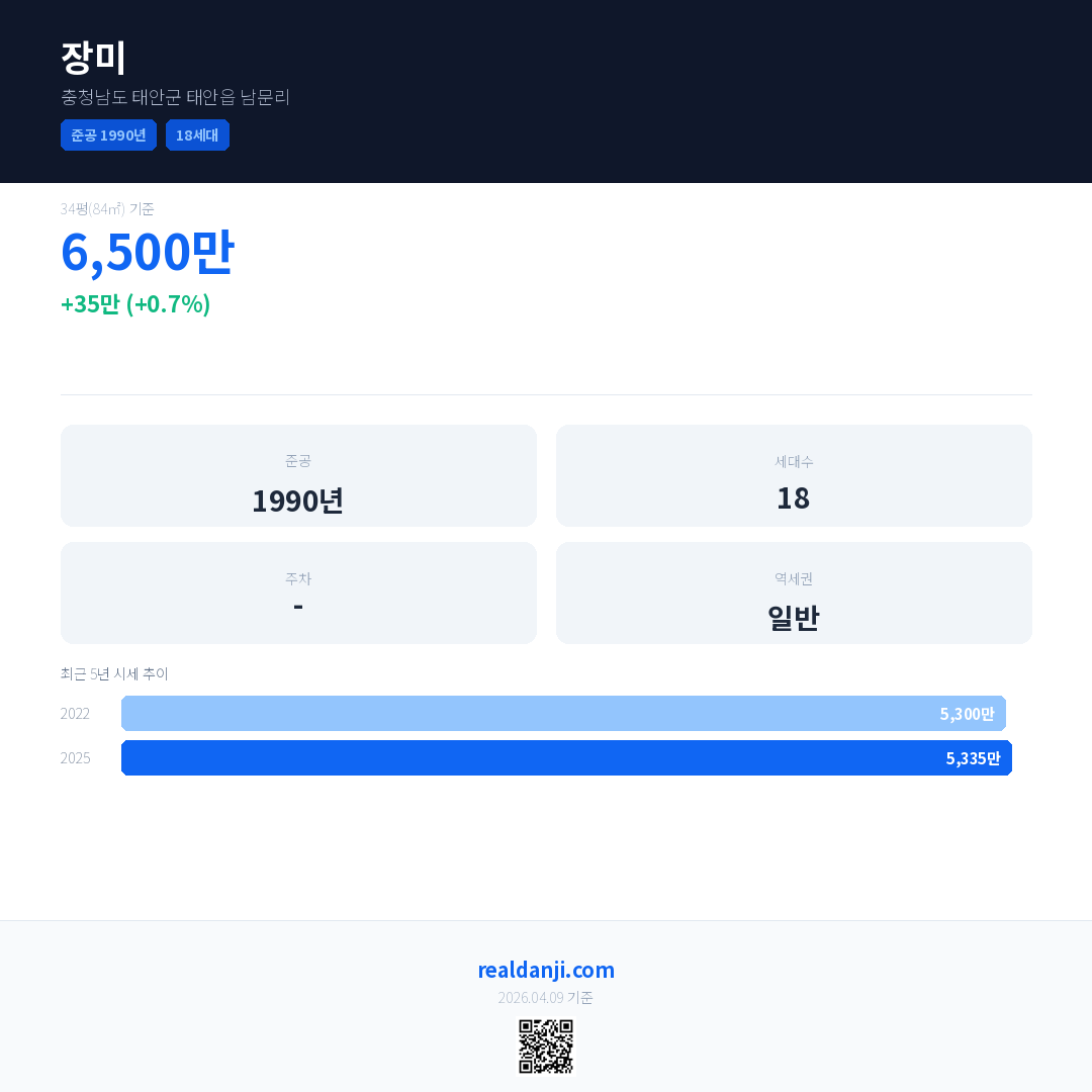 장미 국민평형 기준 2025년 평균 거래가는 5,335만으로, 전년 대비 0.7% 상승 했습니다.