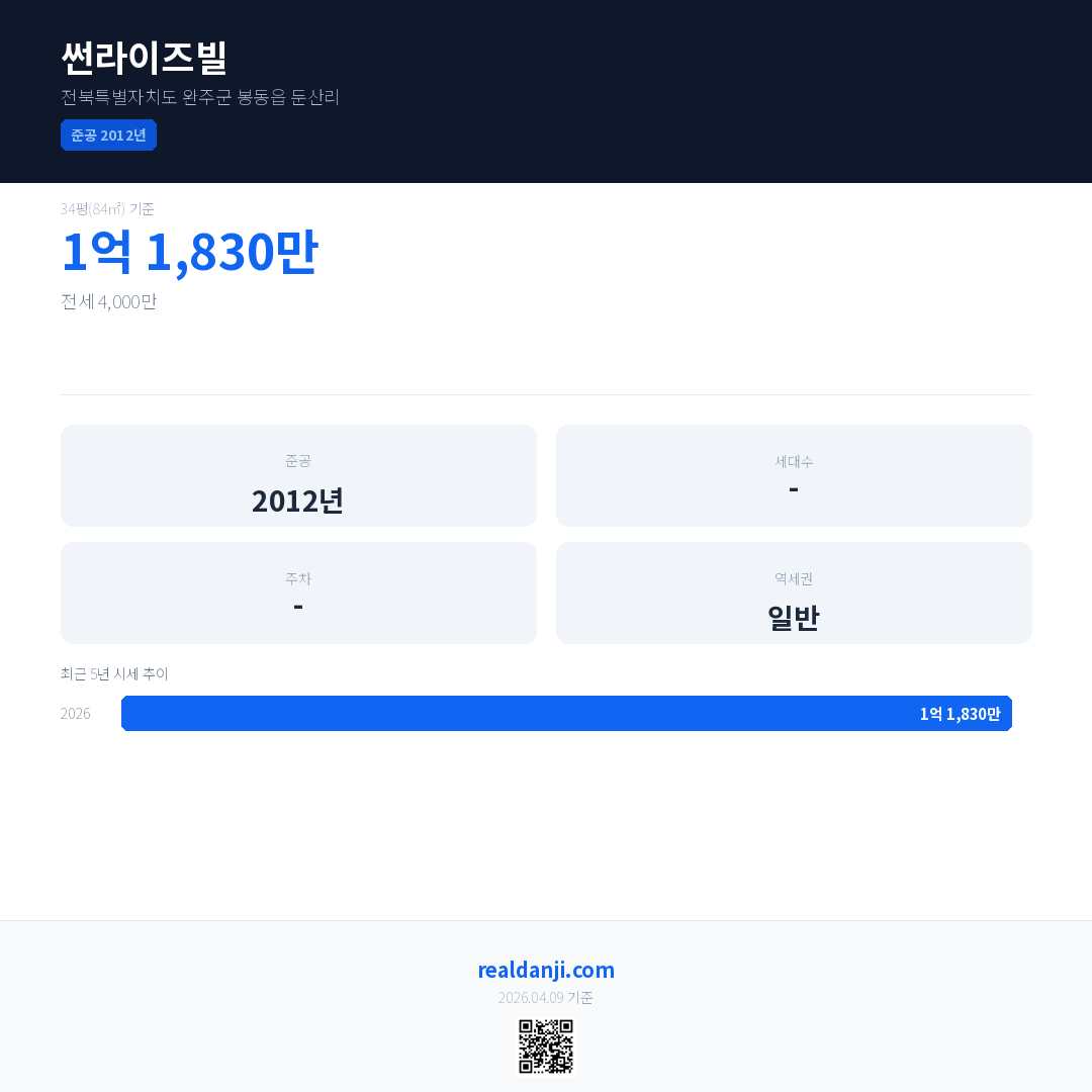 썬라이즈빌 최근 거래가는 1억 1,830만입니다. (2026-03)