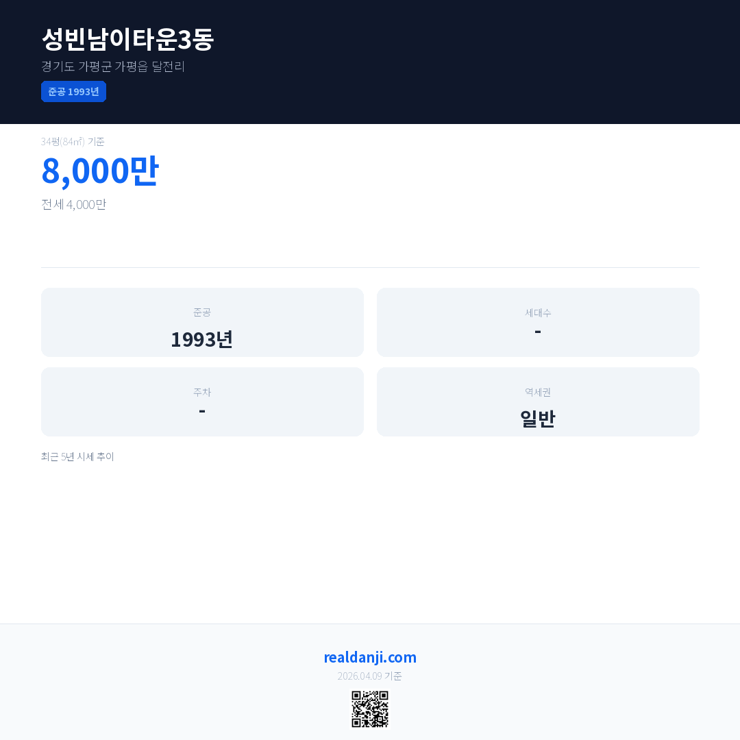 성빈남이타운3동 최근 거래가는 8,000만입니다. (2022-01)