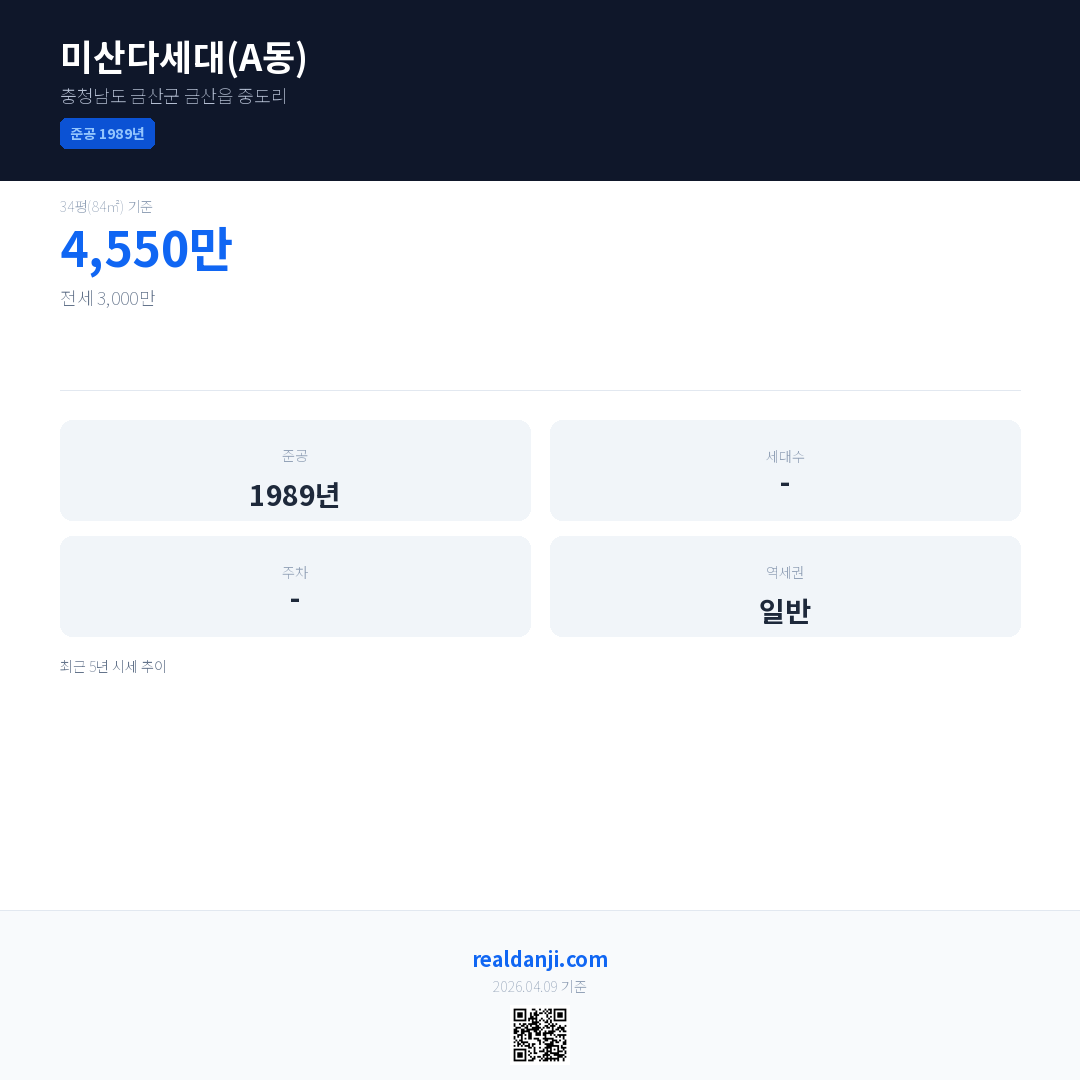 미산다세대(A동) 최근 거래가는 4,550만입니다. (2024-12)