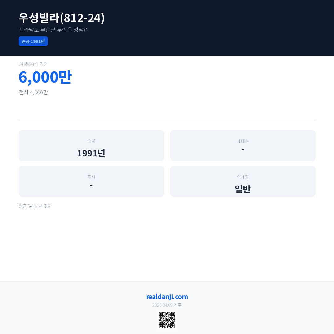 우성빌라(812-24) 최근 거래가는 6,000만입니다. (2026-01)