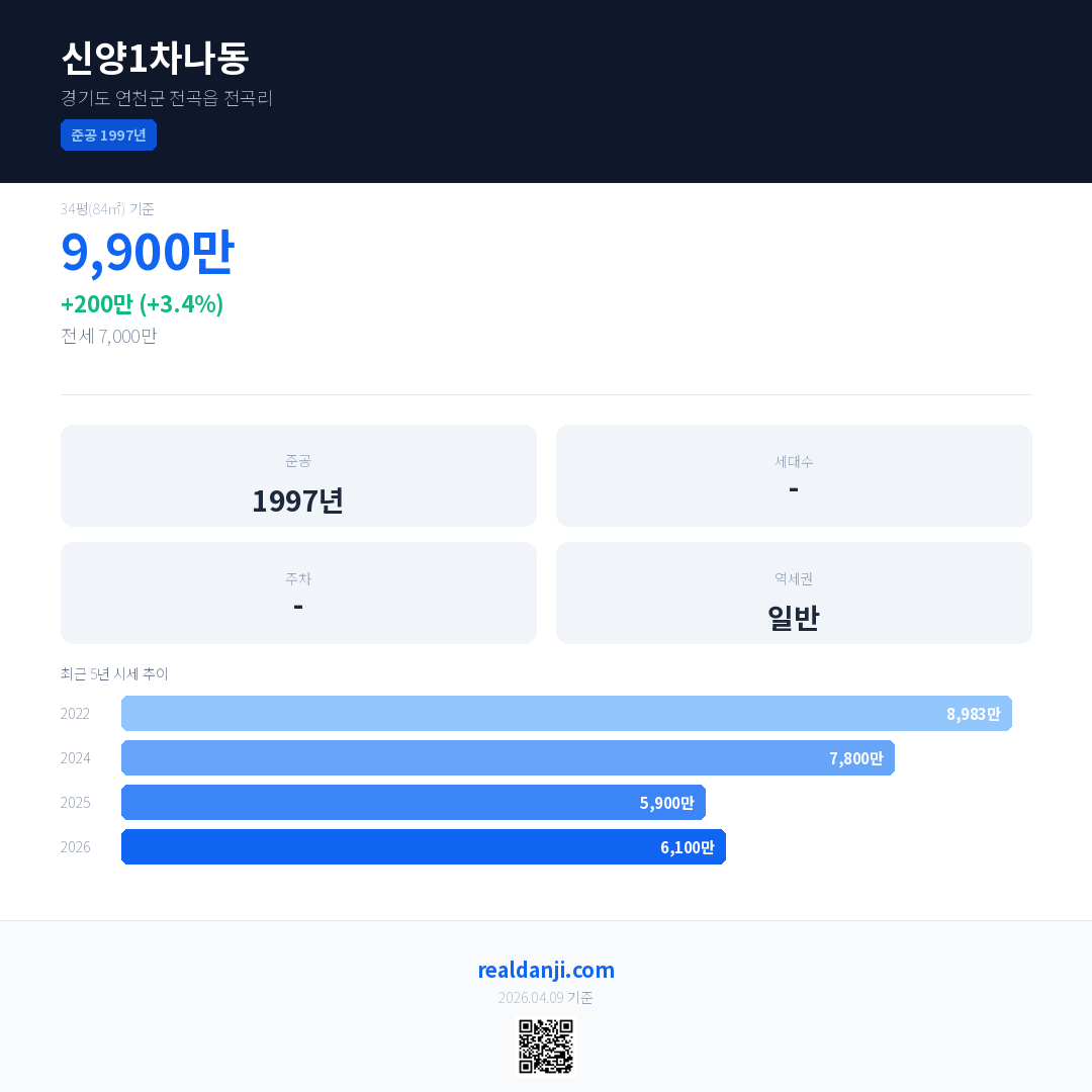 신양1차나동 최근 거래가는 6,100만입니다. (2026-03)