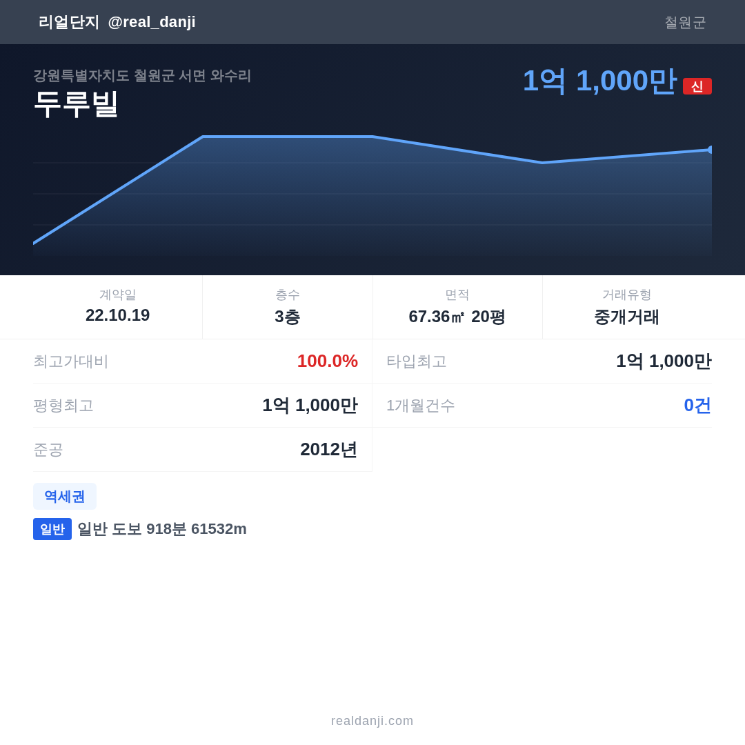 두루빌 최근 거래가는 1억 1,000만입니다. (2022-10)