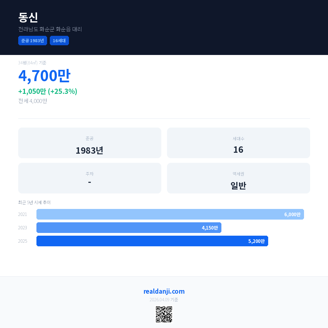 동신 국민평형 기준 2025년 평균 거래가는 5,200만으로, 전년 대비 25.3% 상승 했습니다.