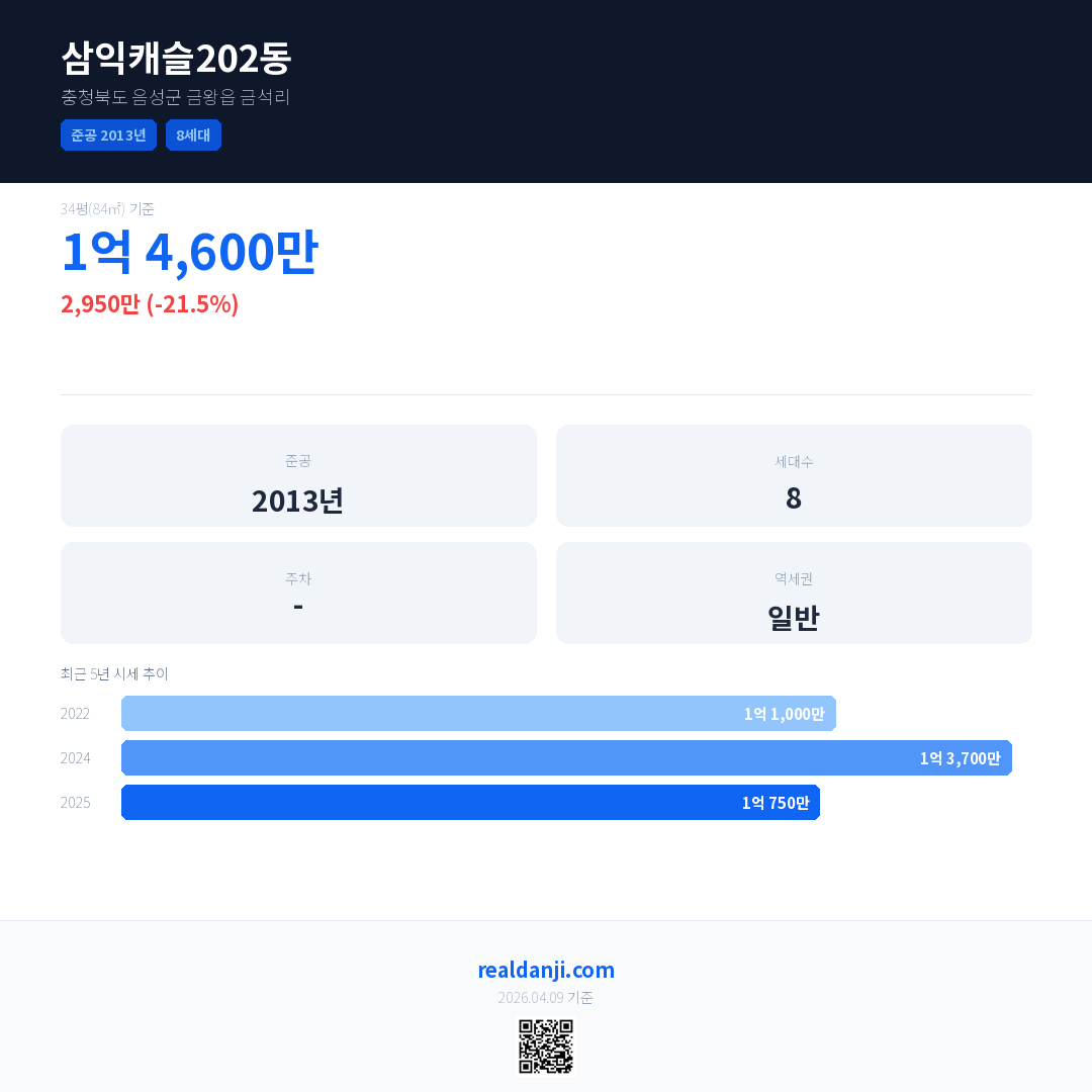 삼익캐슬202동 최근 거래가는 1억 4,600만입니다. (2025-02)