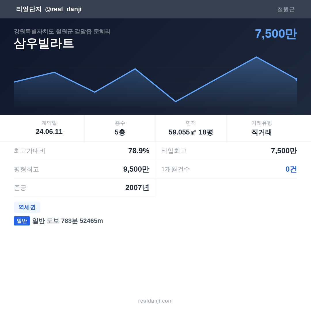 | 2024.06.11 | 59㎡ | 5층 | 7,500만 |