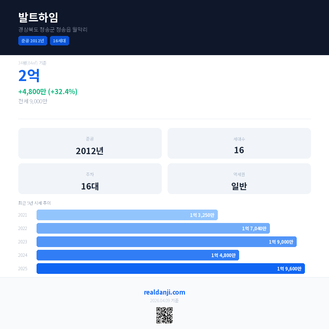 발트하임 국민평형 기준 2025년 평균 거래가는 1억 9,600만으로, 전년 대비 32.4% 상승 했습니다.
